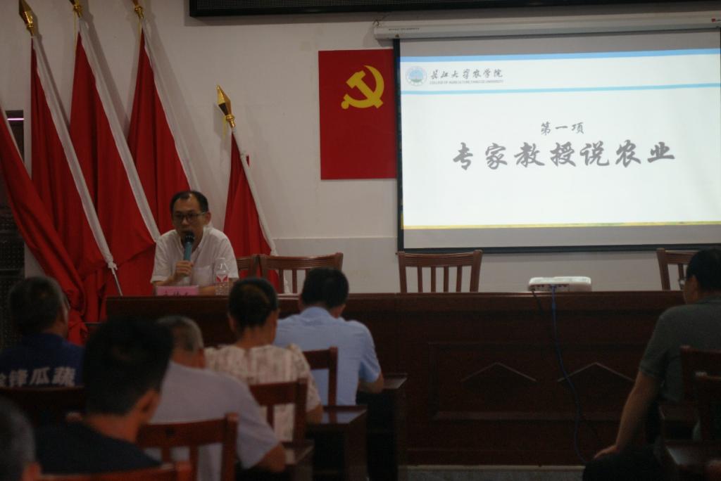 (通讯员 刘钬桥 王静茹 梁传蔚)为深入贯彻“情满三农 惠民先锋”精神,7月12日下午,77779193永利官网暑期“三下乡”社会实践队邀请本院植物保护领域专家马东方及徐志红两位教授,在石首市大垸镇黄金湾村村委员会举行“兴农梦想班”活动,活动包含教授说农业和种子画展览活动。本次活动由石首市农业技术培训学校副校长甘立新主持,石首市农业培训学校校长郑先凯,石首市农业农村局蔬菜办副主任李松发出席,华中农业大学暑期“三下乡”社会实践队及黄金湾村村民代表参加活动。