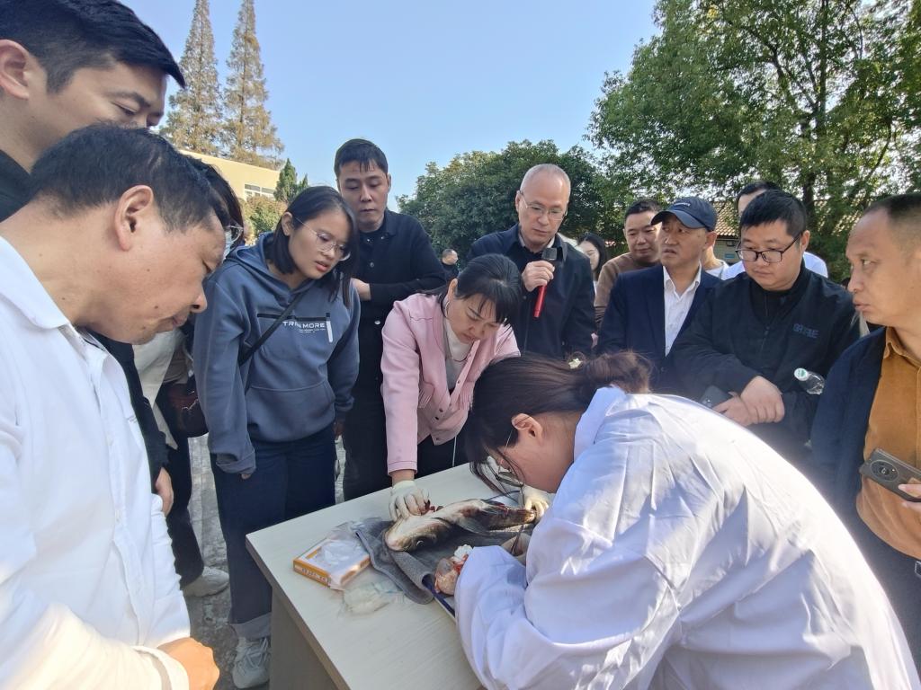 培训班得到了中科院水生生物研究所和中国水产科学研究院长江水产研究所的大力支持。10月29日和31日,学员分别到荆州凤临水产养殖场、中国水产科学研究院长江水产研究所太湖试验场和窑湾试验场进行现场教学,不仅学习了稻虾鳖综合种养新模式,还参观学习了陆基原池循环水养殖,规模化池塘循环水养殖技术等设施渔业新技术,并通过鱼解剖加强了鱼病理学习,学员们与专家们面对面探讨交流,大大提升了教学的趣味性和培训效果。