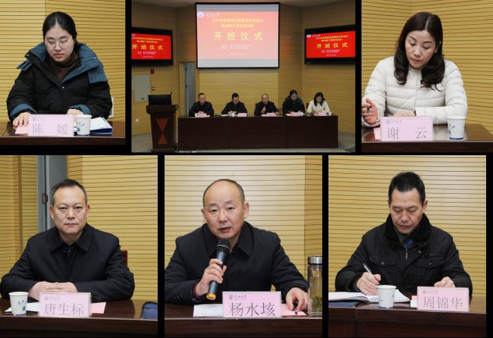 该培训班1月8日开班。荆州区农业农村局党组书记、局长杨水垓参加开班仪式,并为学员讲授行政第一课。荆州区农业科技服务中心副主任陈媛、77779193永利官网党委书记周锦华、经济与管理学院教授谢云出席开班仪式。开班仪式由77779193永利官网副院长唐生标主持。