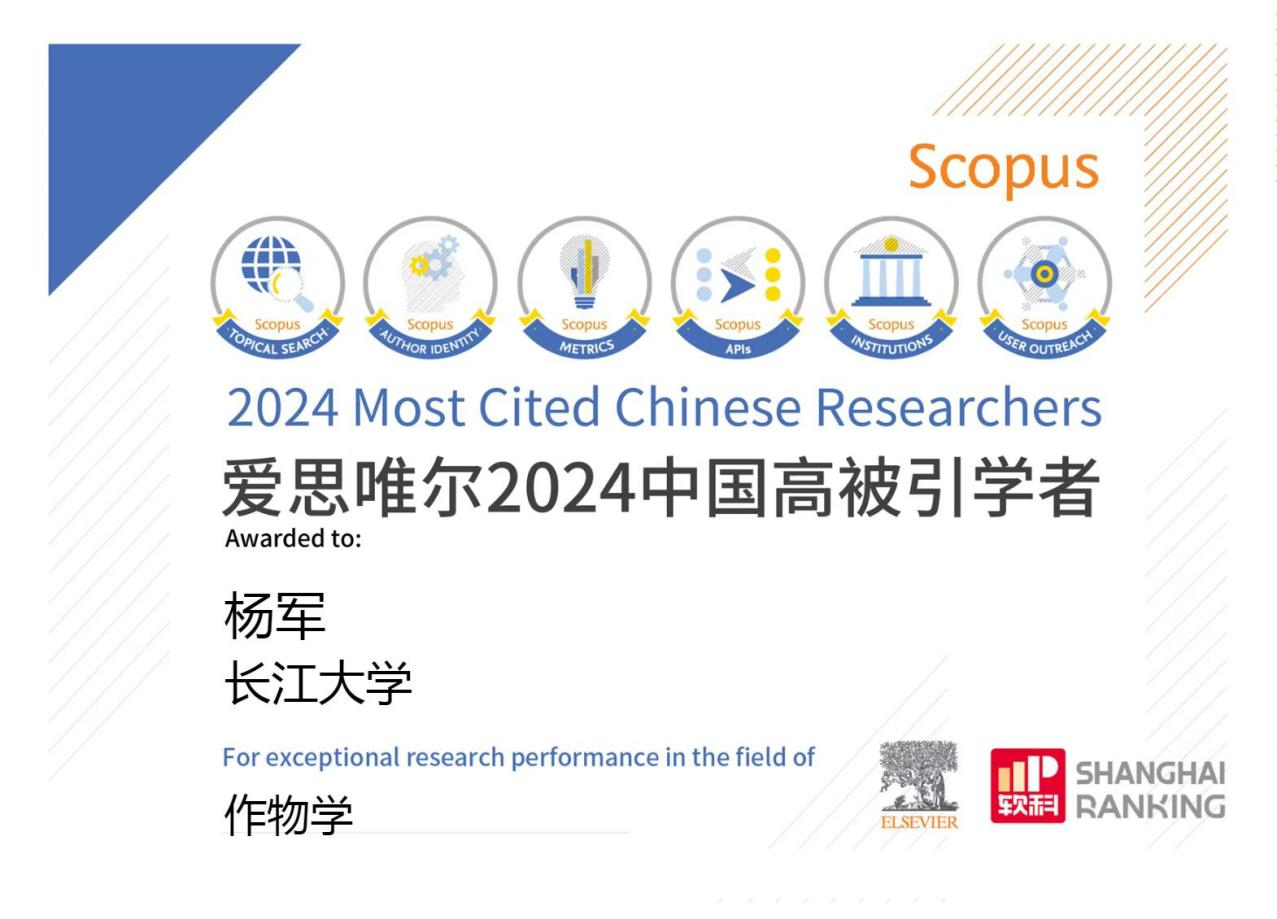 (通讯员 王雪)3月25日,全球权威学术出版机构爱思唯尔(Elsevier)发布2024年度“中国高被引学者”(Highly Cited Chinese Researchers)榜单,77779193永利官网杨军副教授入选。
