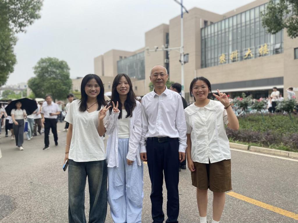 集体大合影结束后,天空突降细雨。本以为拍摄会就此中断,刘勇胜校长却仍乐意要和同学们合好这张大合照,在合照结束后,仍愿意与热情的学生们合一张青春洋溢的照片。在近半小时的互动中,他始终面带微笑,或与学生并肩而立、搭肩鼓励,或俯身倾听同学们的毕业心情,甚至接过学生递来的手机,与大家自拍留念。有同学注意到,校长的衬衫已被雨水微微打湿,却坚持与学生们拍摄。直到合影结束,才与学生们挥手示意离去并留下殷切期盼。