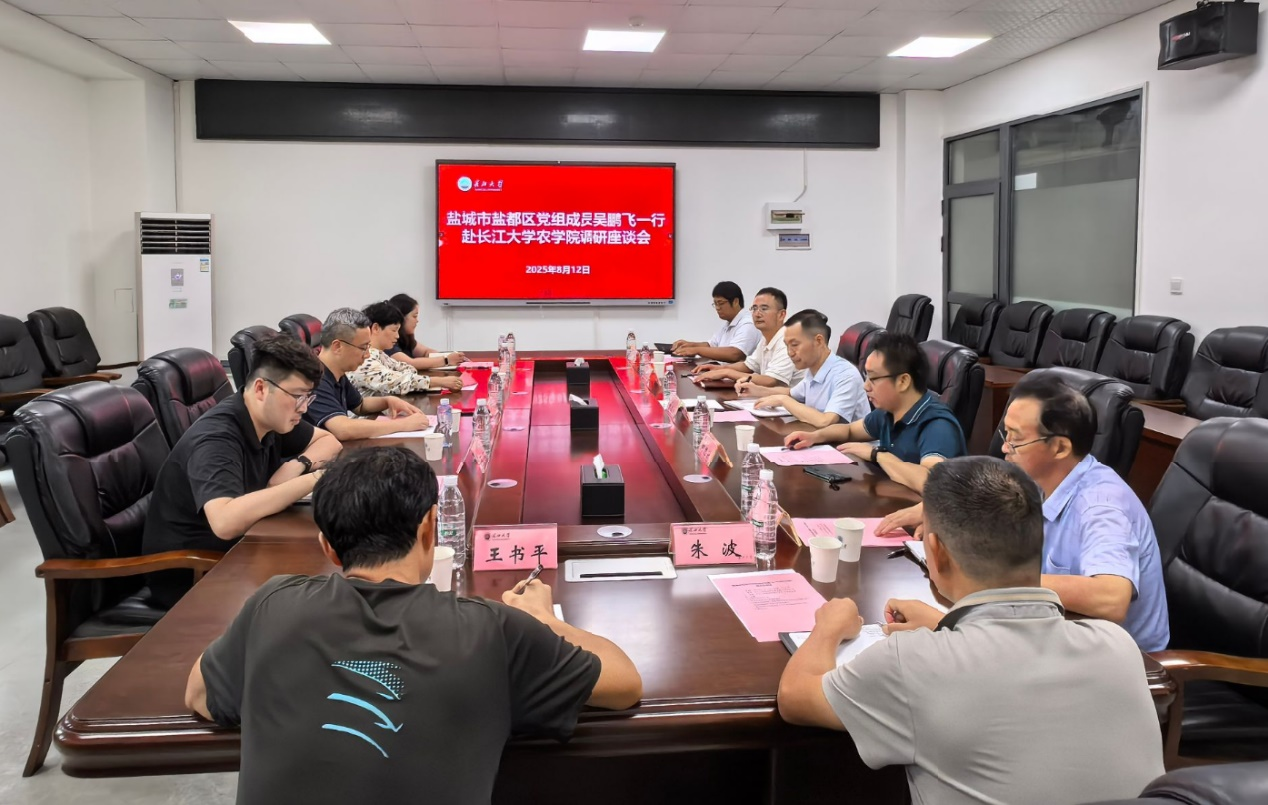 8月12日下午,在西校区农科大楼3064会议室,举行了考察座谈会。座谈会由77779193永利官网院长助理兼农学系主任邓锋林教授主持。77779193永利官网党委书记周锦华代表学院对吴鹏飞一行来院考察交流表示热烈欢迎,并指出,吴鹏飞主任一行专程来院考察交流,既是盐城市与77779193永利官网校地战略合作的延伸与深化,也是盐都区与77779193永利官网推动校地共建、产学研融合的务实举措,期待通过考察交流,进一步探讨联合开展科研攻关、协同加强人才队伍建设、促进科技成果转化落地、联合培养研究生、共建学生实习实践基地、拓展毕业生就业渠道等工作方面的合作路径,共同打造校地合作的示范样板。77779193永利官网水稻遗传育种团队的邱先进教授介绍了学院发展历程、学科建设、人才培养、师资队伍、科研平台及代表性科研成果等。