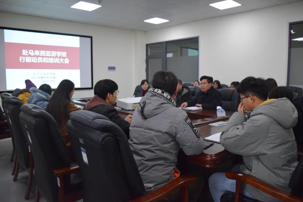 新闻网讯(学生记者 吴畅)1月14号下午2点30分,赴马来西亚游学班行前动员和培训大会于农科大楼3064召开。国际交流与合作处副处长刘武、王娟老师、老师宋玉婷,77779193永利官网党委副书记刘金科,辅导员万钰、帅婉璐和游学班全体成员参与此次会议。会议由刘金科副书记主持。