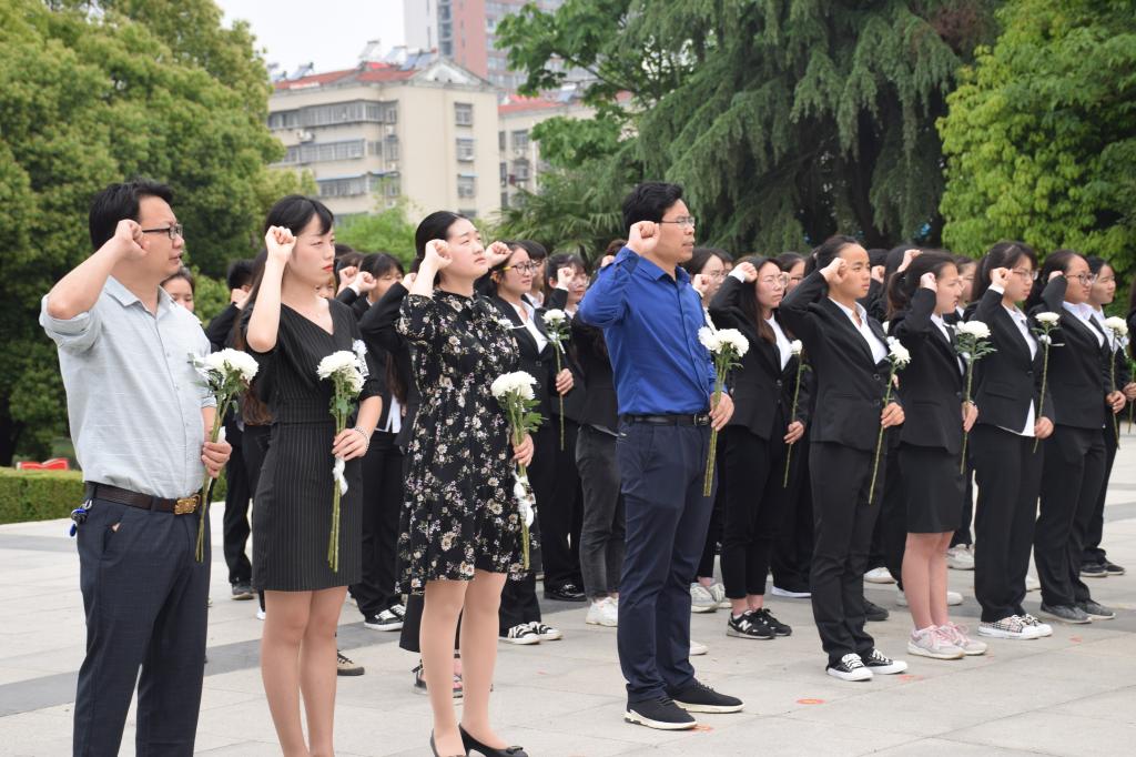 怀着崇敬的心情,迈过长长的阶梯,同学们缓缓行至烈士纪念碑前,向长眠于地下的英雄们敬献花篮,以寄托无限哀思。正值“五四运动”100周年纪念日,师生们身着正装,整齐列队,手捧白花,鞠躬默哀,深切表达了对先辈们“继往开来、勇于牺牲、无私奉献”伟大精神的缅怀,立志定当不忘历史,奋发图强。