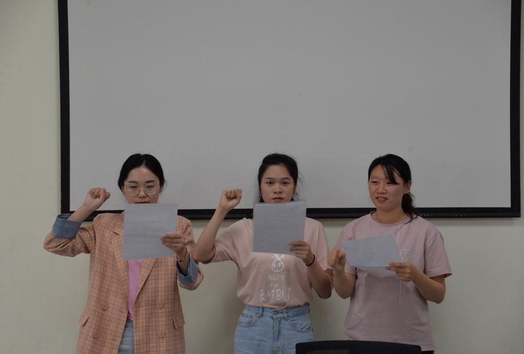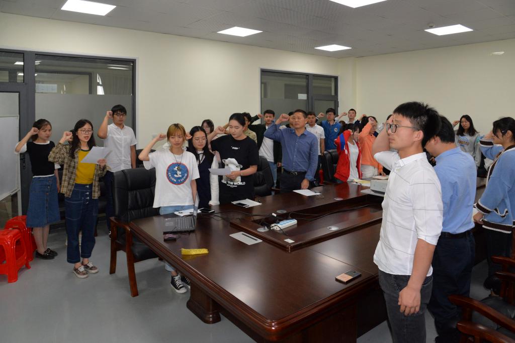 后经投票表决17名同学都被接收为预备党员。接着在党员范如旖的带领下新老党员庄重宣誓:“我志愿加入中国共产党,拥护党的纲领,遵守党的章程,履行党员义务,执行党的决定,严守党的纪律,保守党的秘密,对党忠诚,积极工作,为共产主义奋斗终身,随时准备为党和人民牺牲一切,永不叛党。”