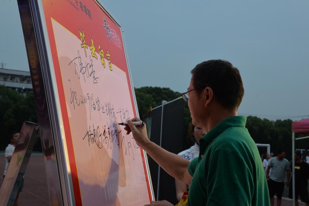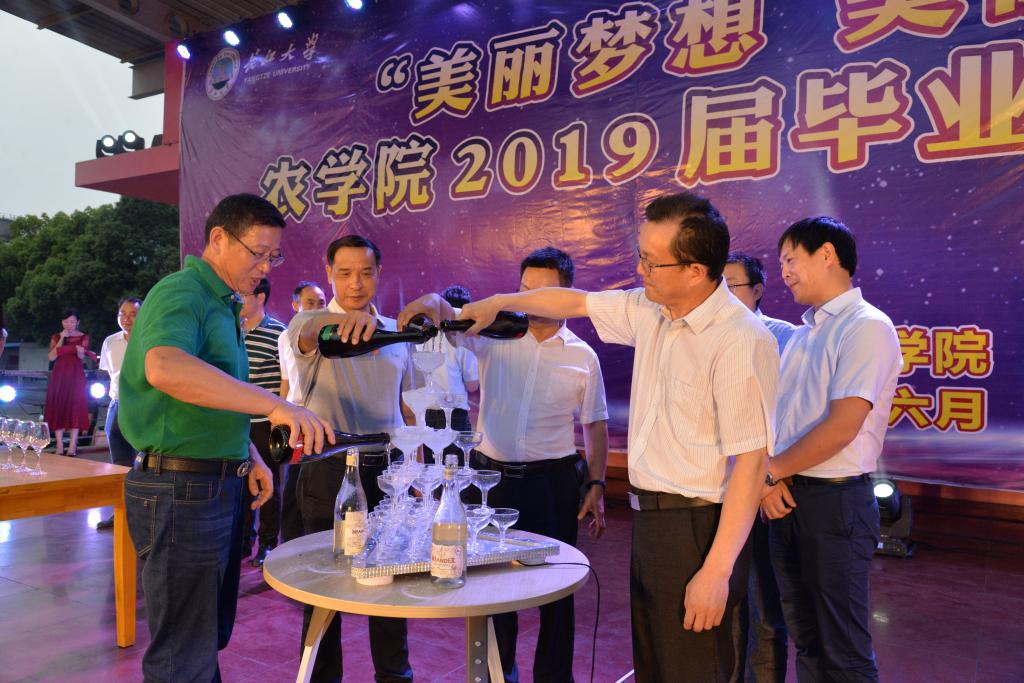 晚上七时许,餐会正式开始,学校相关职能部门负责人与77779193永利官网老师们,一同为2019届毕业生送上真挚的祝福。“感恩的心•眷念的情”赠言签名活动中,老师和同学们纷纷走向台前,在留言板前长久驻足,提笔写下满腔深情;“梦想启航•助力放飞”环节里,500余个氢气球承载着师生们的梦想,飞向了遥远、蔚蓝的天际;香槟开启仪式上,师生们斟满祝福,为“长大长新、乡村振兴、国家复兴”共同举杯。
