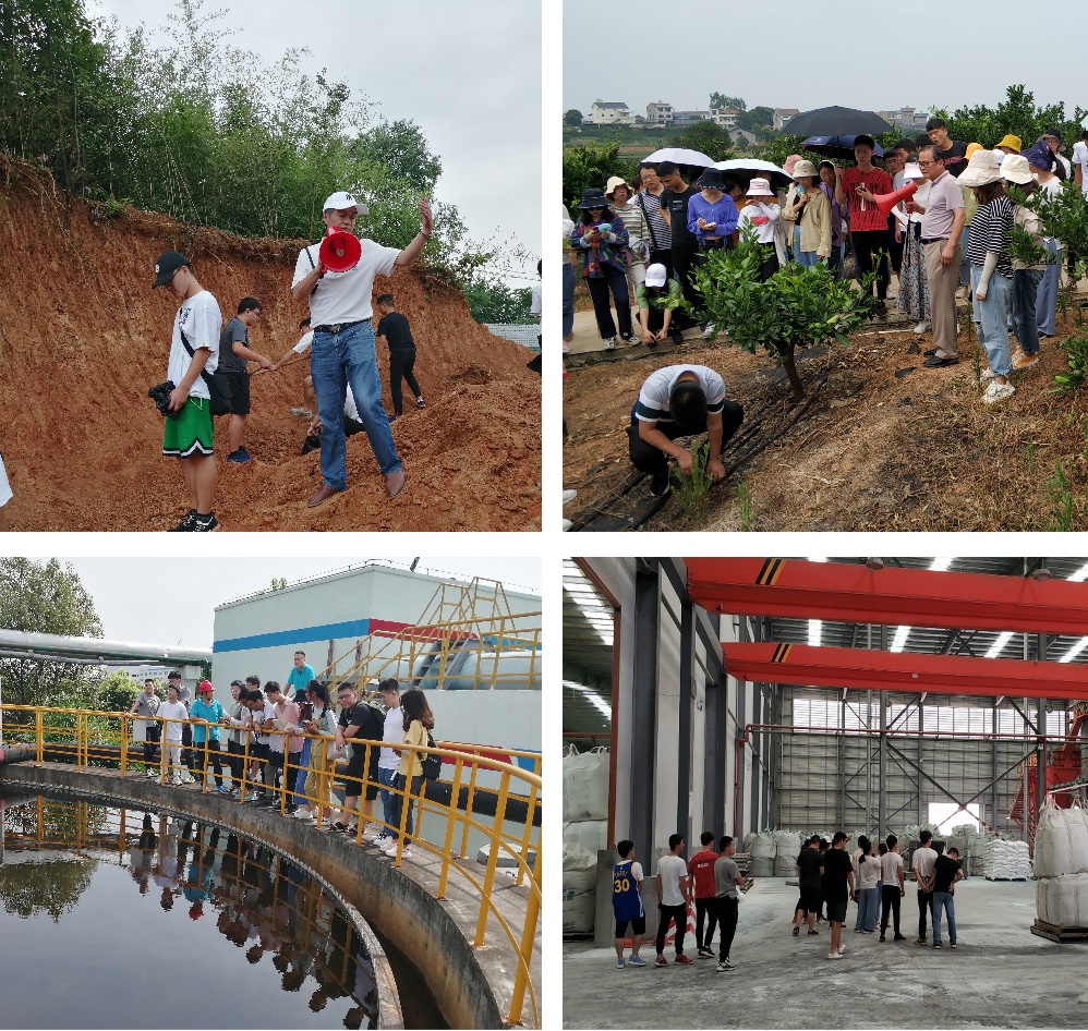 7月6日上午,师生一行首站到访宜昌安琪酵母股份有限公司。在宜昌市耕肥站刘云站长和安琪酵母研发部梁思威工程师的带领下,师生依次参观酵母生产污水处理系统、废物有机肥处理车间和富氨水溶肥生产线,详细了解安琪酵母在废水、废渣无害化处理、资源化利用方面所采取的工艺流程以及产生的生态、经济和社会效益。7月7日,师生驱车前往与安琪酵母密切合作的迪斯科科技集团(宜昌)有限公司,并分批参观了该公司高端复合肥原料间、配料间、除尘系统、造粒高塔、分包间和总控室。接下来师生深入宜昌蜜桔洋红合作社,实地考察水肥一体化即膜下滴灌在柑橘种植生产上的应用。据合作社负责人介绍采用滴灌技术可显著提高水肥利用率,降低农业面源污染,实现节本增效的综合效益。在农技推广部门的大力支持下,该地区柑橘种植水肥一体化得到快速推广应用,取得喜人的经济和生态效益。7月8日松滋参观洈水水库和颜军洞喀斯特地貌。