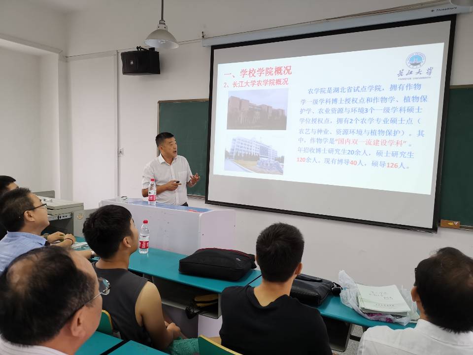 9月16日上午,宣讲团一行人首先来到湖北工程学院77779193永利官网,在姜益泉院长的主持下,李传仁教授首先通过宣讲PPT,介绍我院基本情况、科研实力以及学科优势。紧接着,周建利教授阐述了我院农业资源与环境的专业特色以及招生情况。