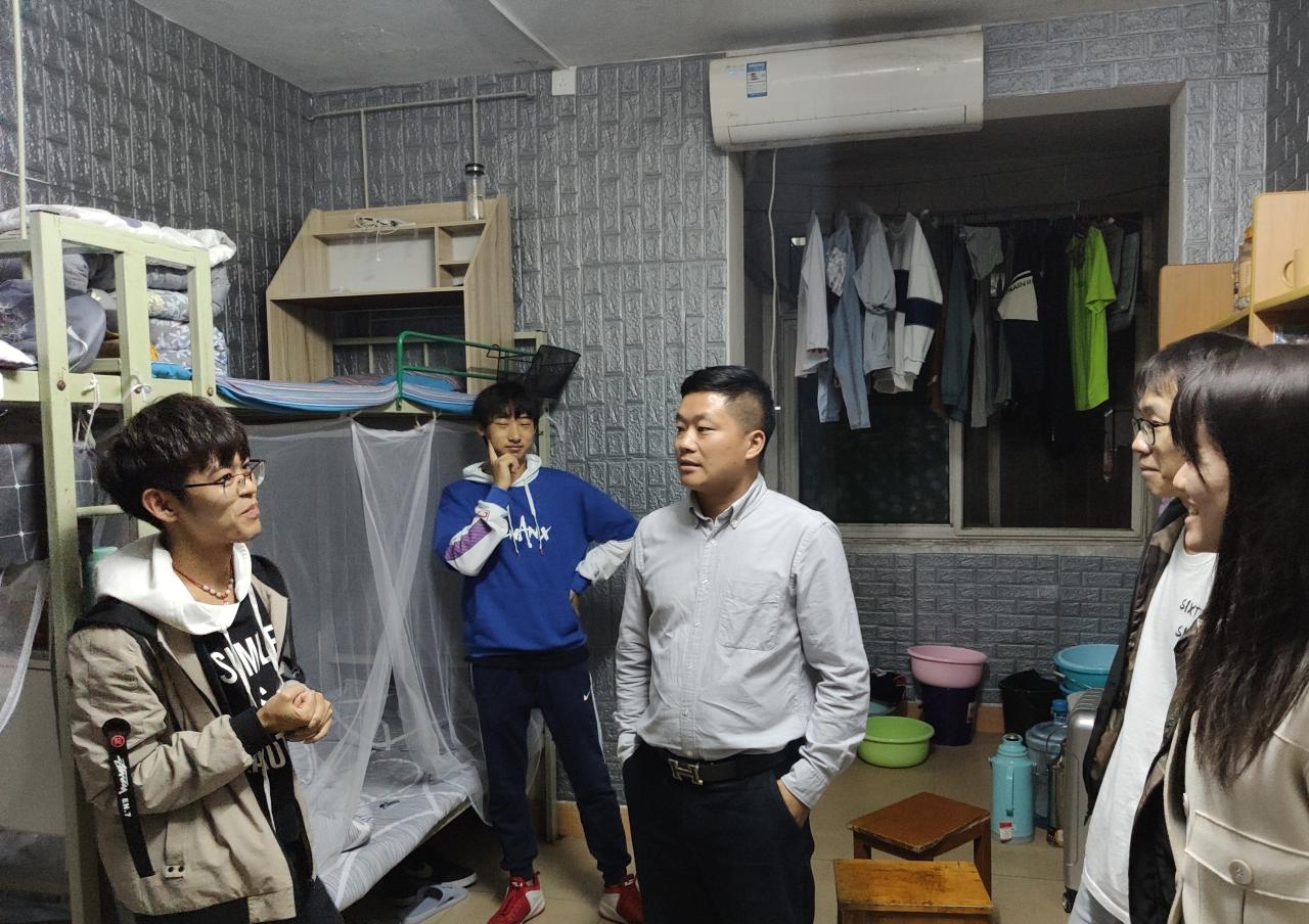 新闻网讯(见习记者 汤莉)为助力军运会,确保军运会期间校园安全稳定,10月20日21:00,我院党委副书记谭亮魁,团委书记尹小华,宿委会主任万钰,辅导员吴钐、付雪娇和兼职辅导员施秀飞走访了77779193永利官网本科生和研究生寝室。