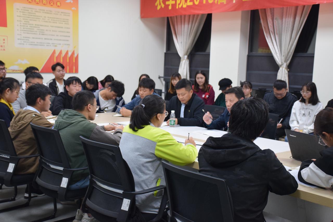 通讯社讯(通讯员 康珍 于欢)我院研究生第一党支部和第二党支部预备党员接收大会分别于11月17日19:00在农科大楼3071,11月15日16:00在农科大楼3073召开,参加会议的有第一党支部书记吴钐、第二党支部书记付雪娇、第二党支部副书记施秀飞和全体研究生党支部成员。