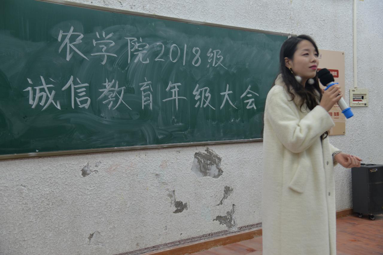 “诚实守信向来是中华民族的优良传统,标志着社会的文明进步,是公民需要遵守的基本道德准则和必须具备的基本素质,作为一名大学生,我们更应该时刻严于律己,诚信待人。”辅导员万钰于5教203对在座的18级本科生如是说道。