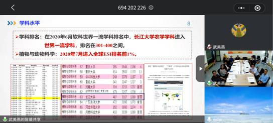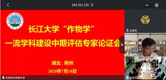 (通讯员 武美燕 谭亮魁)为了检验一流学科中期建设成效,凝心聚力争创一流学校,7月18日,我院举行了“作物学”一流学科建设中期评估专家评审会。由华中农业大学彭少兵、中国农业大学倪中福、南京农业大学姜东、浙江大学舒庆尧、河南农业大学王道文、湖南农业大学屠乃美、西南大学何光华等教授组成的专家组通过视频会议为我校“作物学”国内一流学科建设“把脉问诊”。