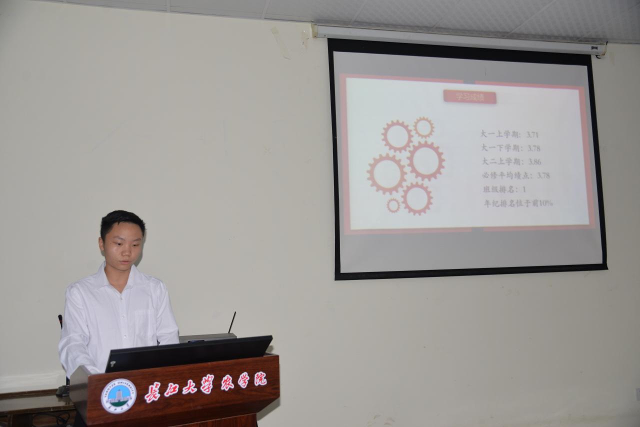 此次现场答辩需经过PPT演讲展示、评委打分、评委点评三个环节。答辩正式开始,整个答辩现场井然有序。随后,每位答辩人详细地介绍了各自在校期间所担任的职务、所获得过的奖项,并且列举自己在学术研究、实践生活、志愿公益、学生服务、创新创业方面所取得的成就,准确地阐述了自己申报十佳兴农青年的理由。各位选手答辩结束后,四位评委对他们进行了打分。