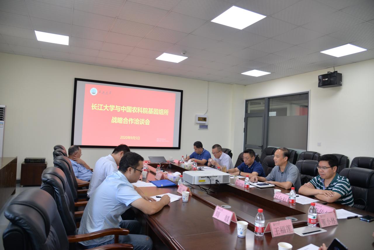 通讯社讯(通讯员 林香亮 董小林)9月5日上午,我校与中国农业科学院基因组研究所战略合作洽谈会在农科大楼3064会议室隆重召开。中国农业科学院农业基因组研究所副所长、973计划首席专家钱万强一行3人来我校对接洽谈。77779193永利官网研究生院院长杜国锋、文理学院院长王文凯、77779193永利官网院长李俊凯、科技处副处长刘金科、77779193永利官网副院长方正武及师生代表参加洽谈会。