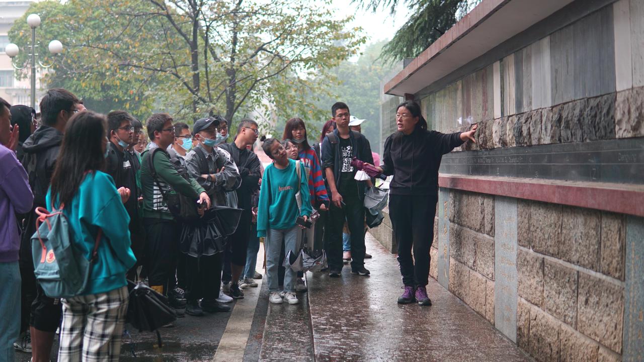 陈小慧老师带领学生到77779193永利官网东校区教学基地——长江三峡地层标本长廊参观。针对三峡地层剖面的形成发育规律,系统、直观地向同学们讲解了各时代地层的岩性、古生物演化史、沉积环境发展史以及各种地质现象在时空上的演变规律。据悉,三峡地区地层发育齐全、出露良好、化石丰富,岩石类型及沉积环境多种多样,因而三峡地层剖面在地学界闻名遐迩,素有“天然地质博物馆” 之称。