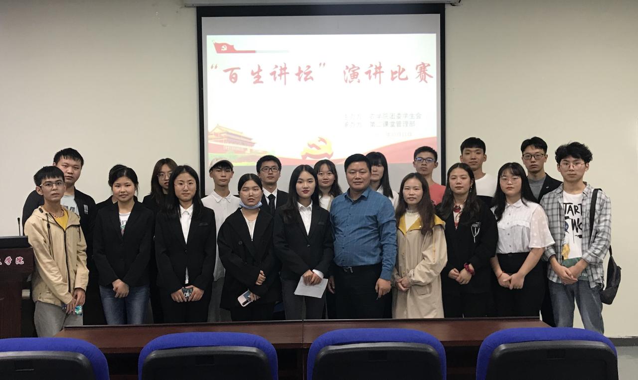 为学习习近平新时代中国特色社会主义思想,加强青年学生思想政治教育,我院特举办“百生讲坛”主题演讲比赛。据悉,此次演讲比赛有“共抗疫情·爱国力行”、“绽放战疫青春·坚定制度自信”、“时代使命·青春担当”等多个主题。学生可以自主命题,采取个人公开演讲的方式参加比赛。学院十分重视此次演讲比赛的展开,在宣传期间通过团支书鼓励班级学生积极参赛,并运用其他方式加强宣传力度。