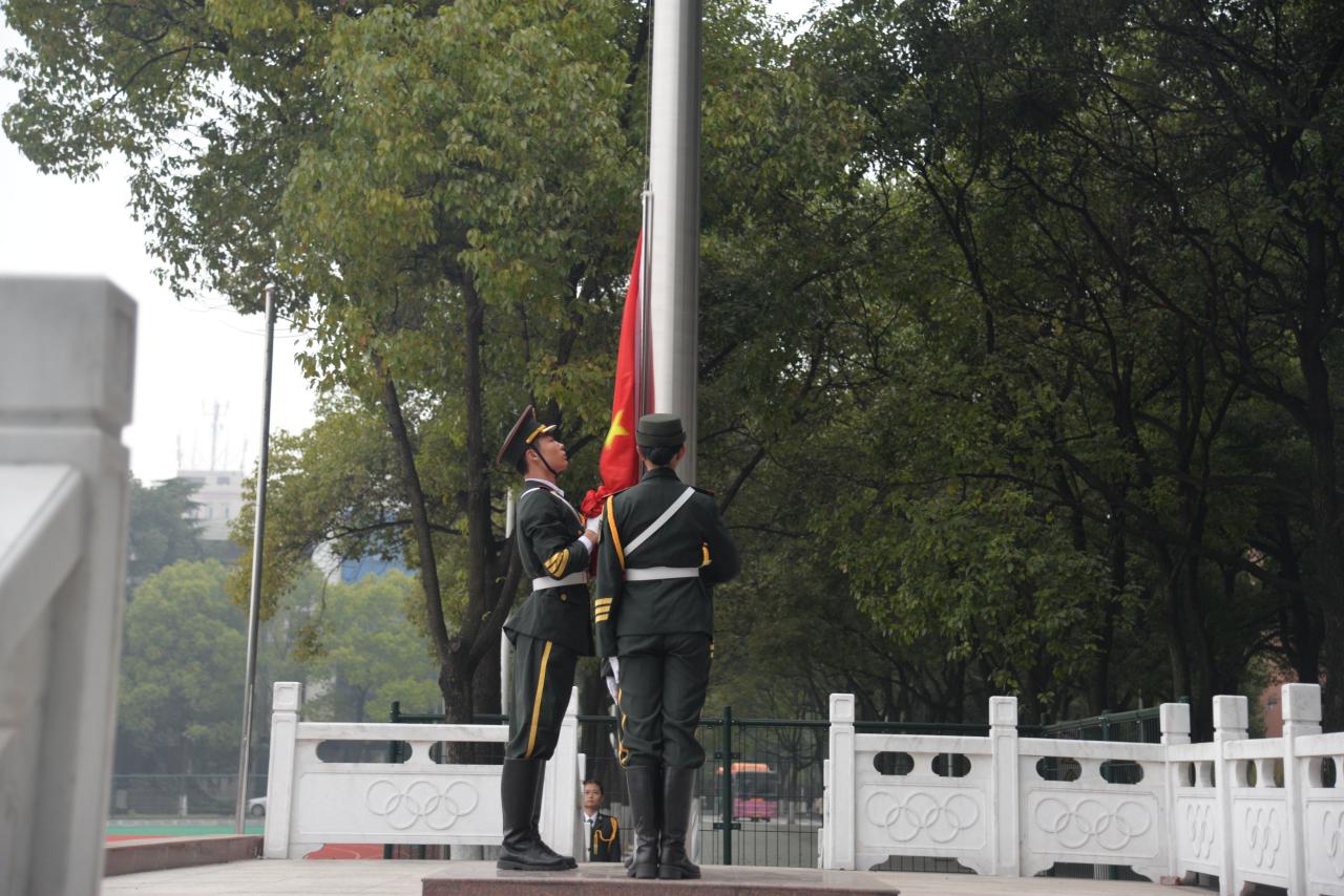 通讯社讯(见习记者 谭昌鑫/文 彭玉琴/摄)为了贯彻党的教育方针,厚植爱国主义情怀,增强广大师生的民族自豪感和自信心,11月16日上午7时,77779193永利官网西校区升国旗仪式在田径场隆重举行,我院党委副书记谭亮魁、学工办主任刘庆、团委书记侯聪、全体辅导员及18、19、20级全体学生参加本次升旗仪式。