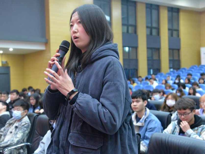 在互动环节,学生代表向袁帅提出自己对个人发展与乡村振兴的疑问,袁帅逐一作答,现场气氛十分热烈。
