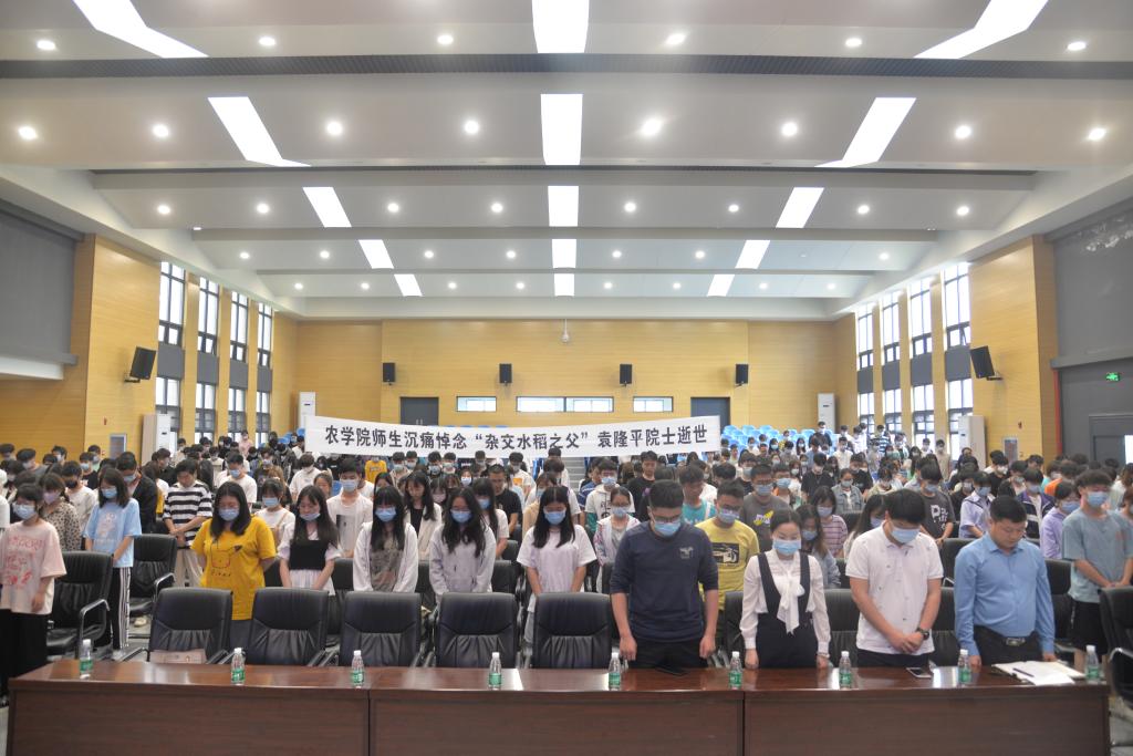 通讯社讯(通讯员 付雪娇)5月27日下午,77779193永利官网在农科大楼1058报告厅举行了以“继承院士遗志,青春告白祖国”为主题的育人大会,通过默哀仪式和宣誓仪式,深切缅怀袁隆平院士。