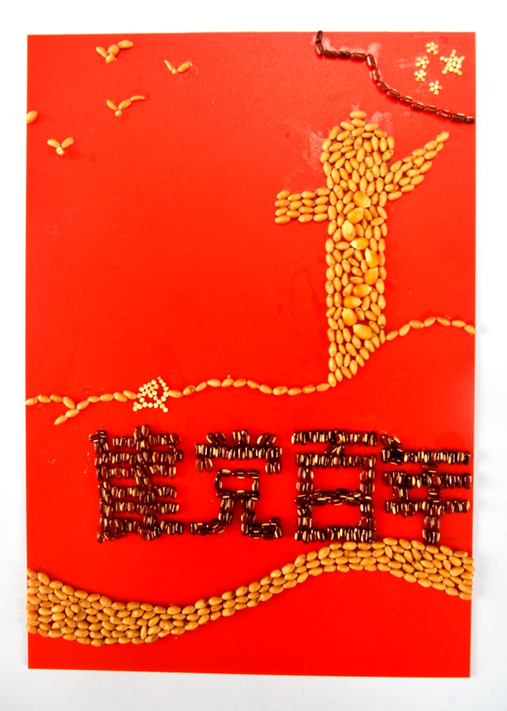 邓元凯等人用藜麦拼出了党徽和五角星,用小麦和玉米展现出华表、和平鸽和金色麦田,在制作“建党百年”四个大字时,他们特意选择了红豆去呈现;为圆“参军梦”,陈苗苗等人用小麦、黑豆和黑米拼出了抗战胜利后解放军威武雄壮的庄严神情。
