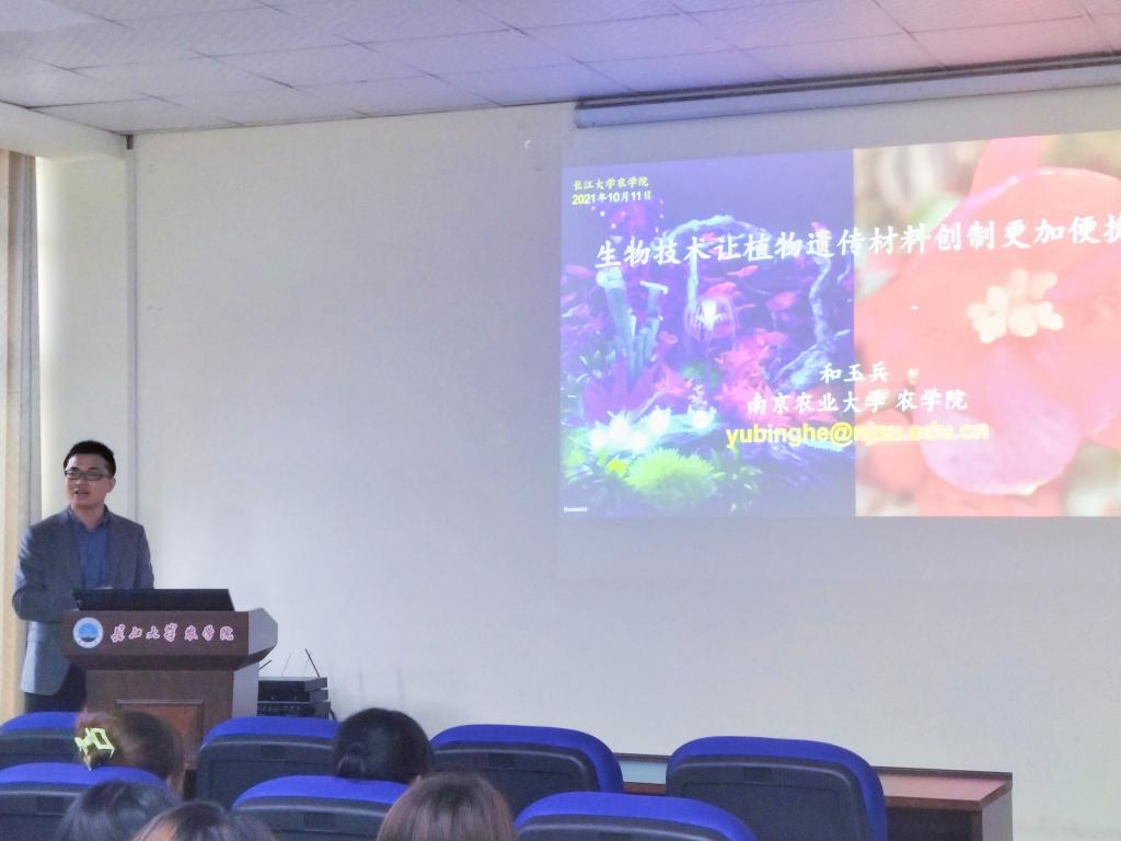 (通讯员 常璐 李秋红)10月11日下午3时,应77779193永利官网邀请,南京农业大学和玉兵副教授莅临我院在农科大楼3073学术报告厅为学院师生作《生物技术让植物遗传材料创制更加便捷》专题报告,农学系刘海洋副教授主持。