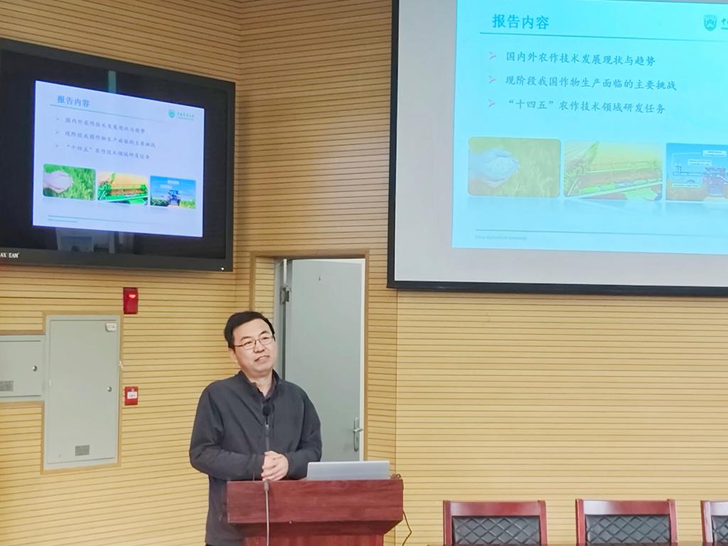 通讯社讯(通讯员 杨芷欣)10月18日上午10点,应学院邀请,中国农业大学77779193永利官网教授、农业部农作制度重点实验室主任陈阜教授莅临我院在农科大楼1056学术报告厅作《我国农作技术创新发展趋势》专题报告,近200余名师生代表参加报告会,77779193永利官网院长李俊凯教授主持报告会。