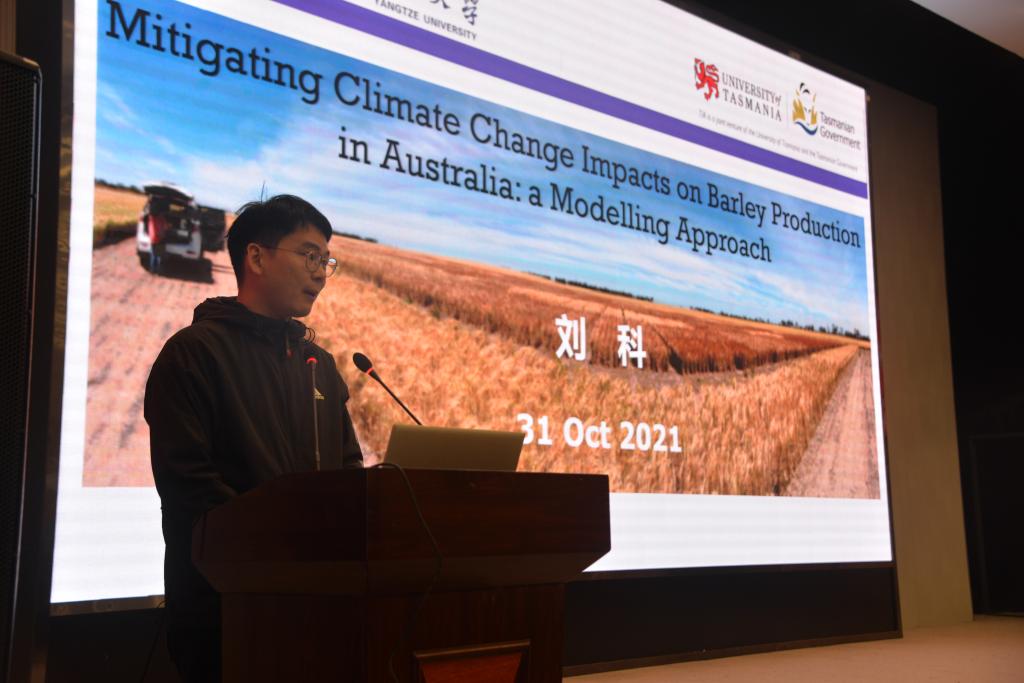 开幕式后,刘科等9名博士研究生和朱旭东等6名硕士研究生分别以各自研究课题及取得的阶段性研究成果进行汇报。博士生刘科以《基于作物模型预测气候变化对澳大利亚大麦生产的影响及适应策略》为题,分享了利用中国新型建模方法研究关于减缓气候变化对大麦生产的影响;博士生蔡智超汇报了N-(1-苯乙基)吩嗪-1-甲酰胺该化合物作用宿主的抗病毒机理,研究内容显示其在体外具有良好的抗禽传染性支气管炎冠状病毒的活性;博士生李於亭从突变基因VRN-D3的等位变异的鉴定探究了调控小麦早抽穗的作用机理。