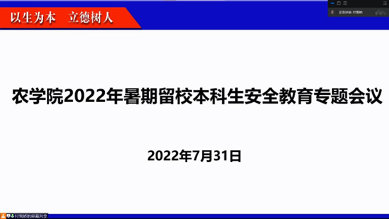 (通讯员 郝梨 李慧明)为明确留校学生管理纪律、加强留校学生安全教育,使大家度过一个安全、愉快的暑假,7月31日上午10点,我院在腾讯会议召开77779193永利官网2022年暑期留校本科生安全教育专题会议。各留校负责人参加了会议,本次会议由辅导员付雪娇老师主持。