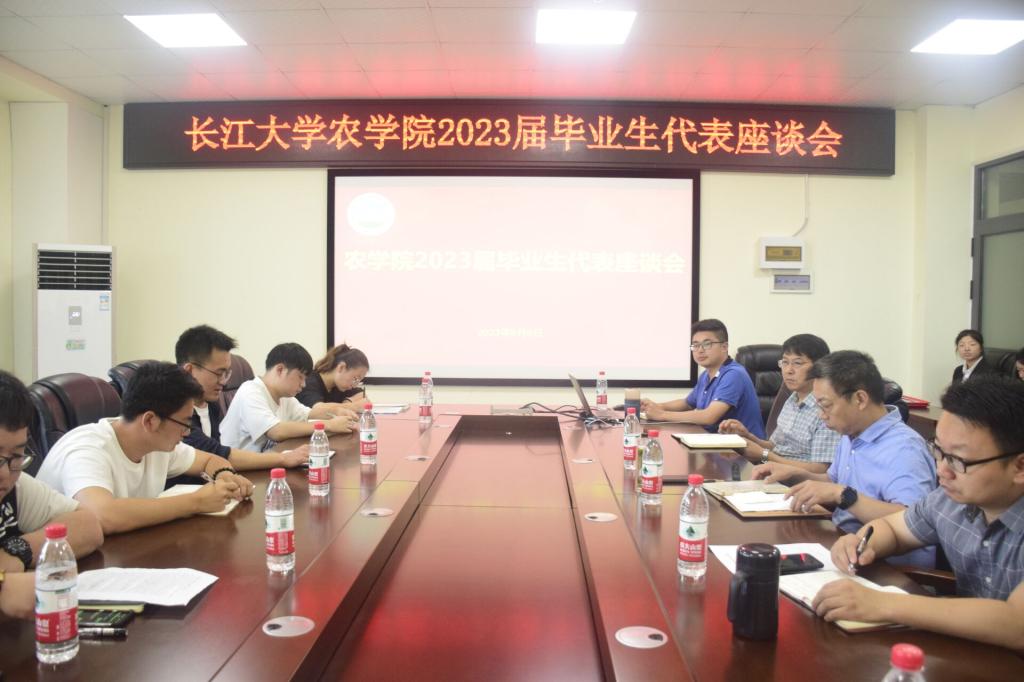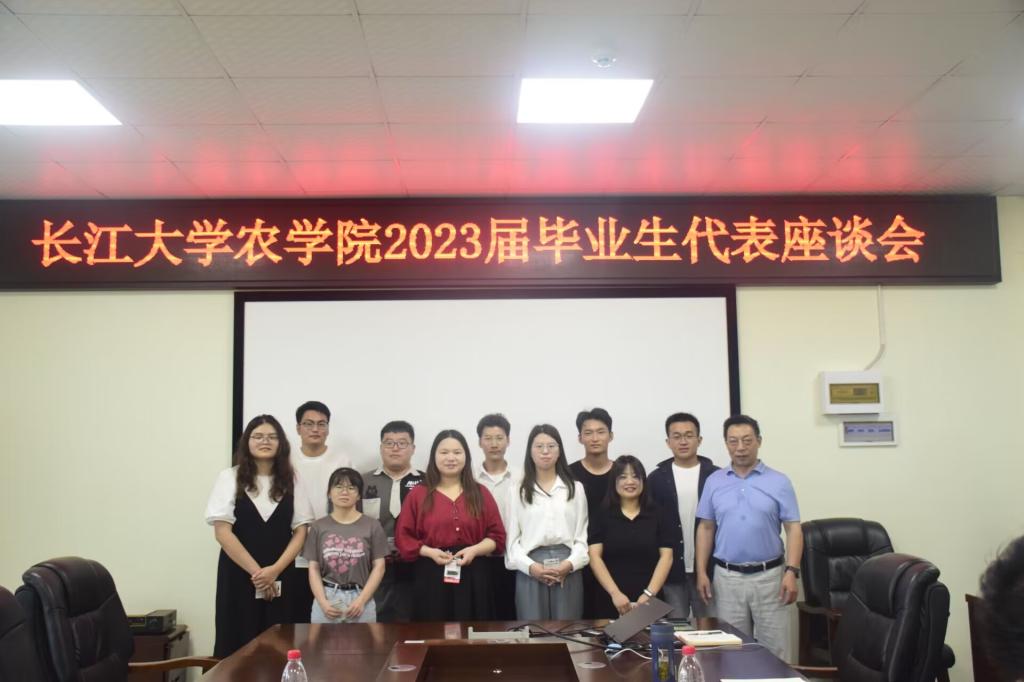 (见习记者 戴兵/文 赵鑫达/摄)2023年6月9日9:00,我院在农科大楼3064会议室举行2023届毕业生座谈会,院到会嘉宾有院长李俊凯、党委书记姜清奎、学工办主任杨云锋、辅导员林香亮以及10名研究生代表、13名本科生代表。本次会议由党委副书记尹小华主持。