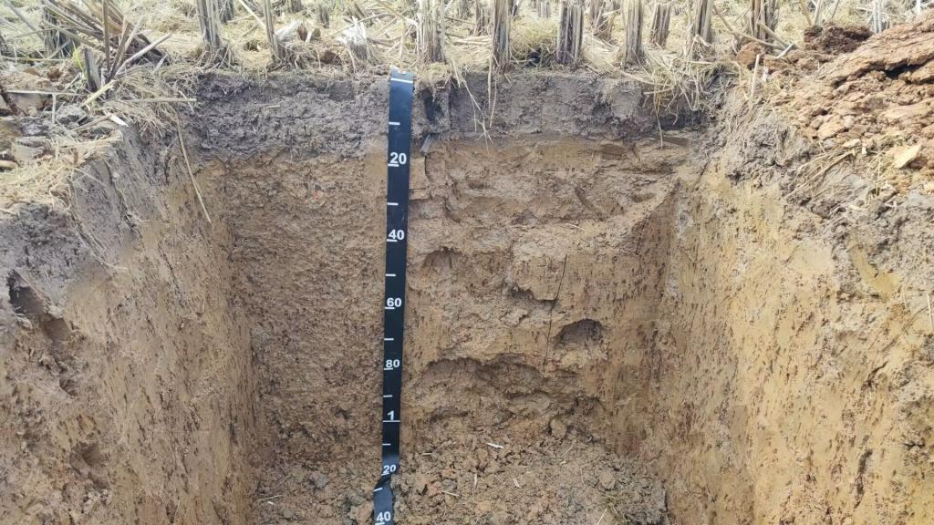 (通讯员 李继福)坐标某位点,一块已完成水稻收获的水田,位于掇刀区团林铺镇鸦铺村,是掇刀区第三次土壤普查第一个土壤剖面采集点,也是荆门市首个土壤剖面采集点。经过前期室内校核和野外勘察,9月28日,77779193永利官网外业调查与采样队顺利完成第一个土壤剖面样品的调查采集工作。