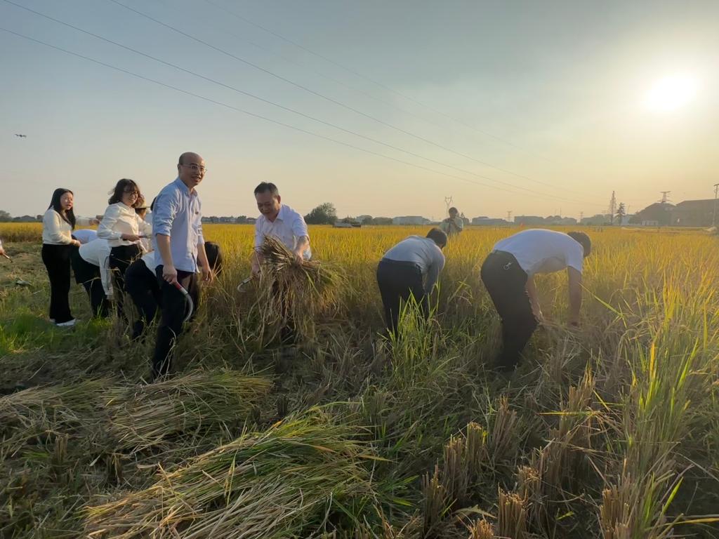在高基庙镇百子庵村“鸭蛙香稻”产业基地,党员们纷纷参观了农业基地,实地调研了基地秋收生产情况,还参加了人、机水稻收割竞赛,党员们在体验农业生产的同时,也收获了秋收的快乐。学院的教授们深入田间地头为该村“鸭蛙香稻”产业基地的农业生产提供技术指导,“感谢77779193永利官网的教授们帮我们农民增收致富,”正在田地里劳作的张阿姨说到。