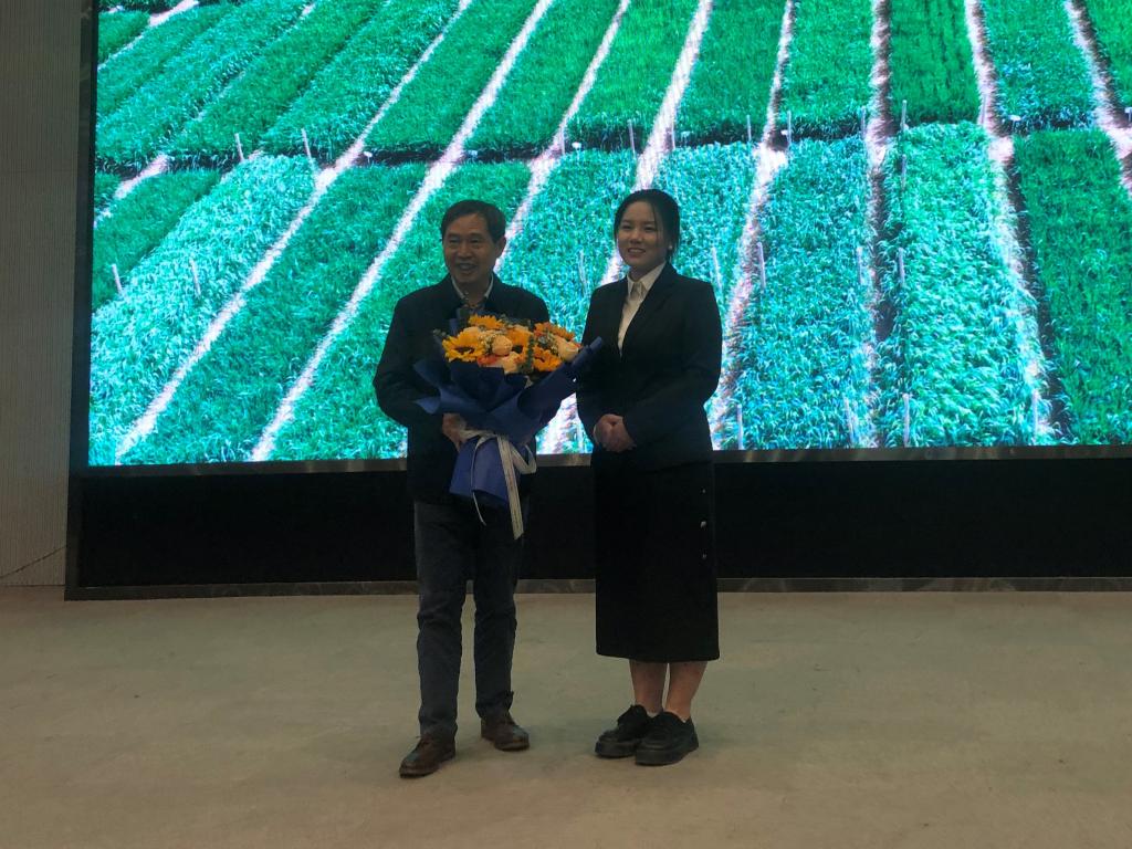 在康振生院士报告结束后,研究生代表柴梦莹为他献上鲜花,这一瞬间充满了温馨和感动,也展现了同学们对康振生院士的敬仰。