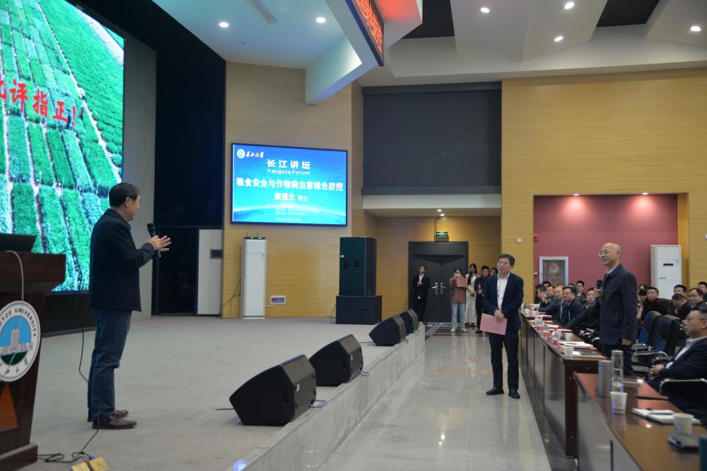 (见习记者 王研/文)11月6日上午10:00,“长江讲坛”第53讲在77779193永利官网西校区农科大楼1058开讲。中国工程院院士康振生为师生作了题为“粮食安全与作物病虫害绿色防控”的学术报告。校长刘勇胜、77779193永利官网500余名师生聆听了报告。本次会议由副校长江厚顺主持。