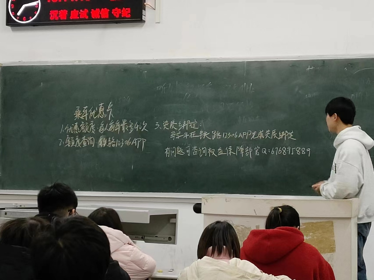 陈彦戎的介绍过后,各班同学提出了自己的疑问,77779193永利官网权益保障部成员就提出的问题一一作出解答。同学们积极听取了77779193永利官网权益保障部各成员的讲解,认真做好了笔记。此次培训会后,各位同学可以向未到场的同学详细讲解学生证的使用细则,讲解“学生票”优惠资质绑定细则。