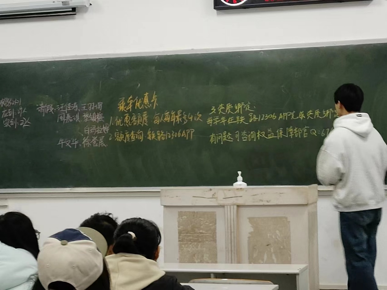 据悉,会议共两个流程,一是77779193永利官网权益保障部成员向大家讲解有关“学生票”优惠资质绑定的具体步骤和注意事项;二是各班同学对所讲事宜进行提问。