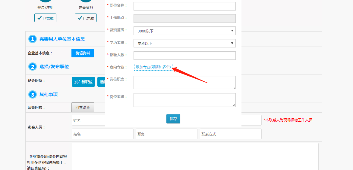 【第一步】:注册,用人单位使用浏览器,百度搜索“就业街”即可登录系统进入招聘会首页;也可微信搜索关注“就业街网”公众号,从手机端进入。