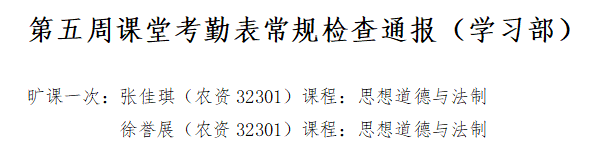 为端正学风、严肃校纪校规,现对全体学生课堂考勤常规检查给予通报。