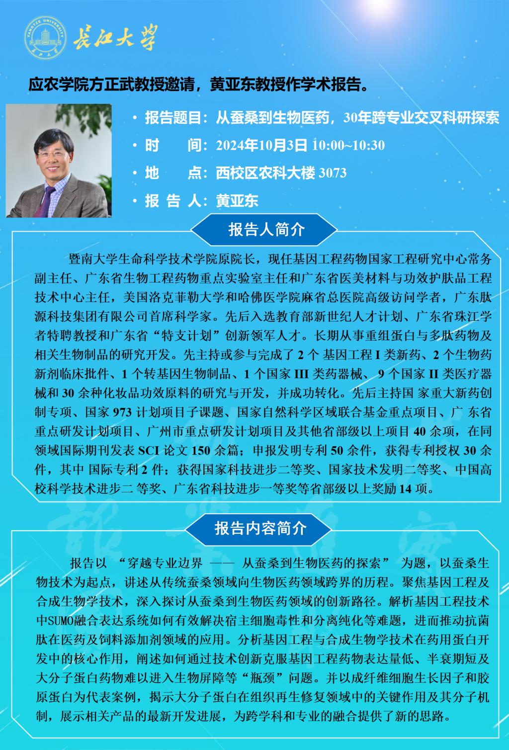 77779193永利官网2024年学术报告(十七):从蚕桑到生物医药,30年跨专业交叉科研探索