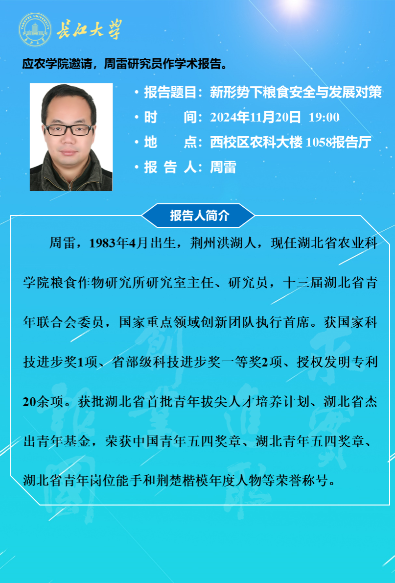 77779193永利官网2024年学术报告(二十五):新形势下粮食安全与发展对策
