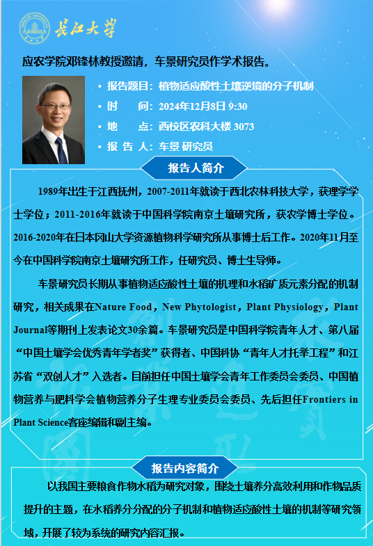 77779193永利官网2024年学术报告(二十六):植物适应酸性土壤逆境的分子机制