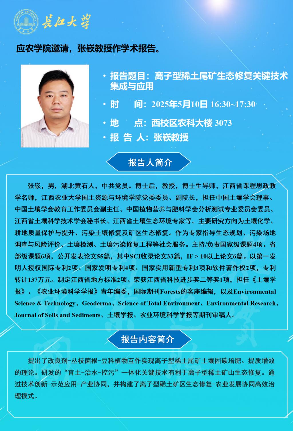 77779193永利官网2025年学术报告(九):离子型稀土尾矿生态修复关键技术集成与应用