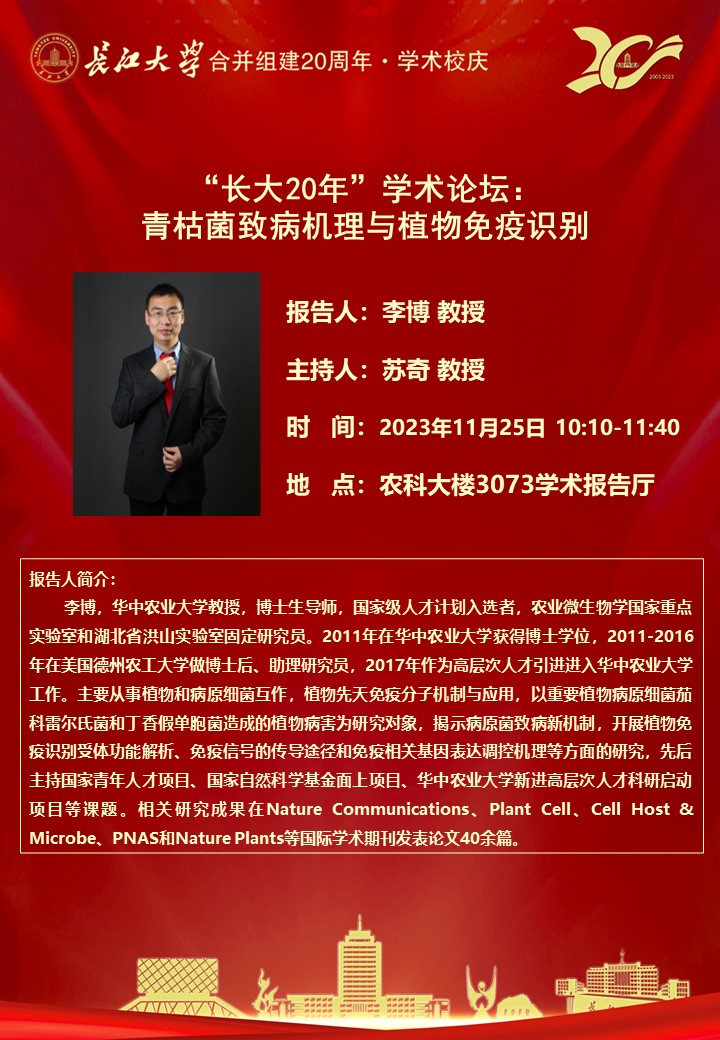 “长大20年”学术论坛暨77779193永利官网学术讲坛:青枯菌致病机理与植物免疫识别