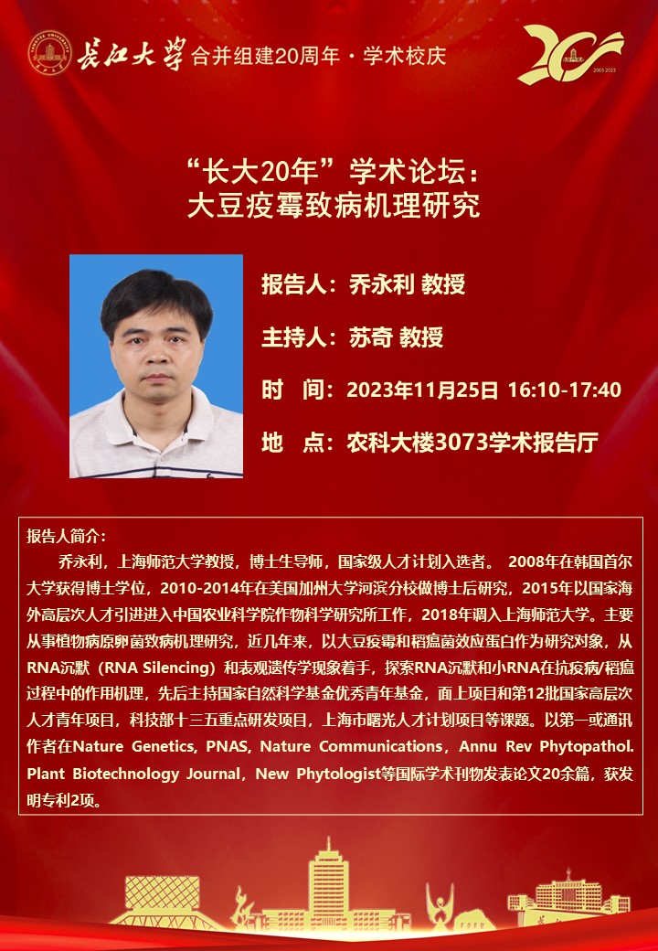 上一篇: “长大20年”学术论坛暨77779193永利官网学术讲坛:蛋白乙酰化修饰调控尖孢镰刀菌致病与产孢的机制研究
