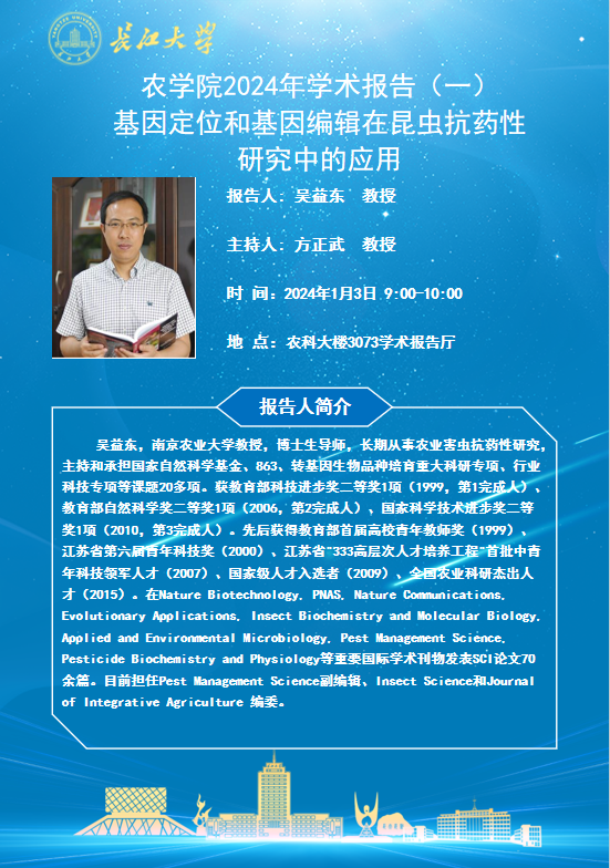 77779193永利官网2024年学术报告(一):基因定位和基因编辑在昆虫抗药性研究中的应用
