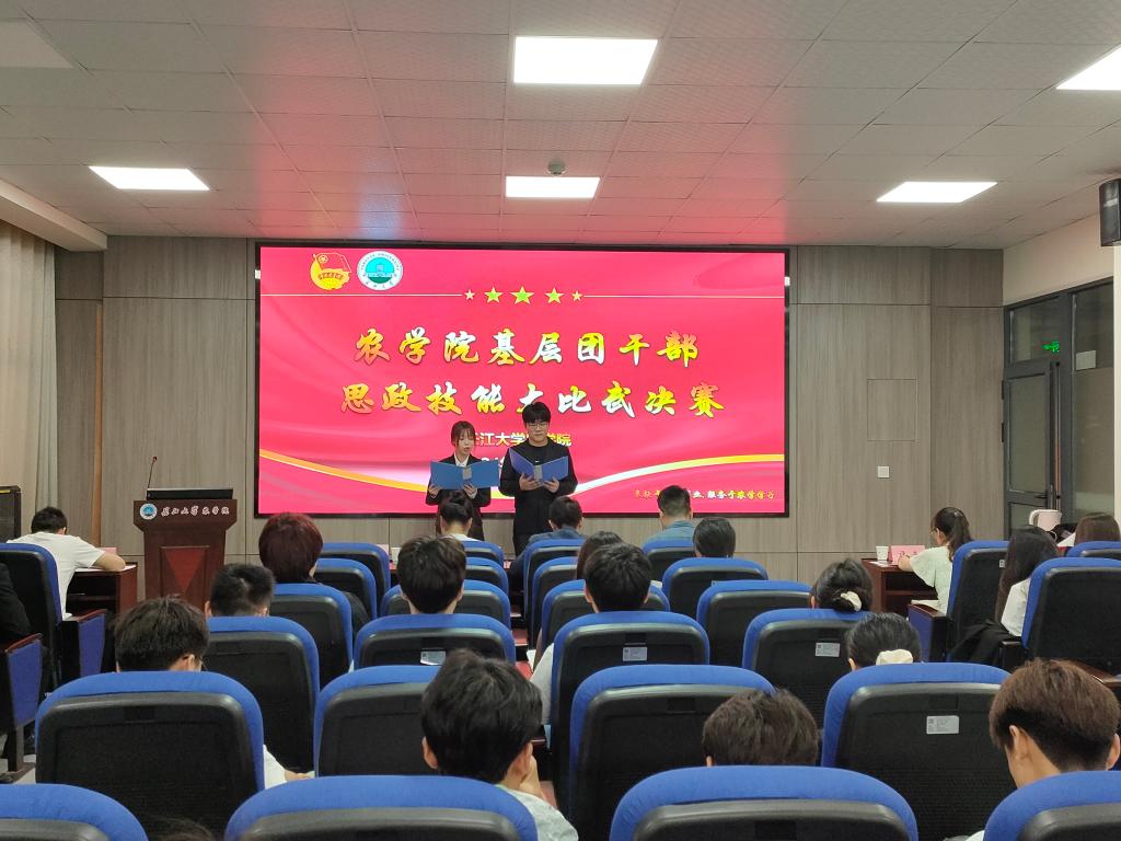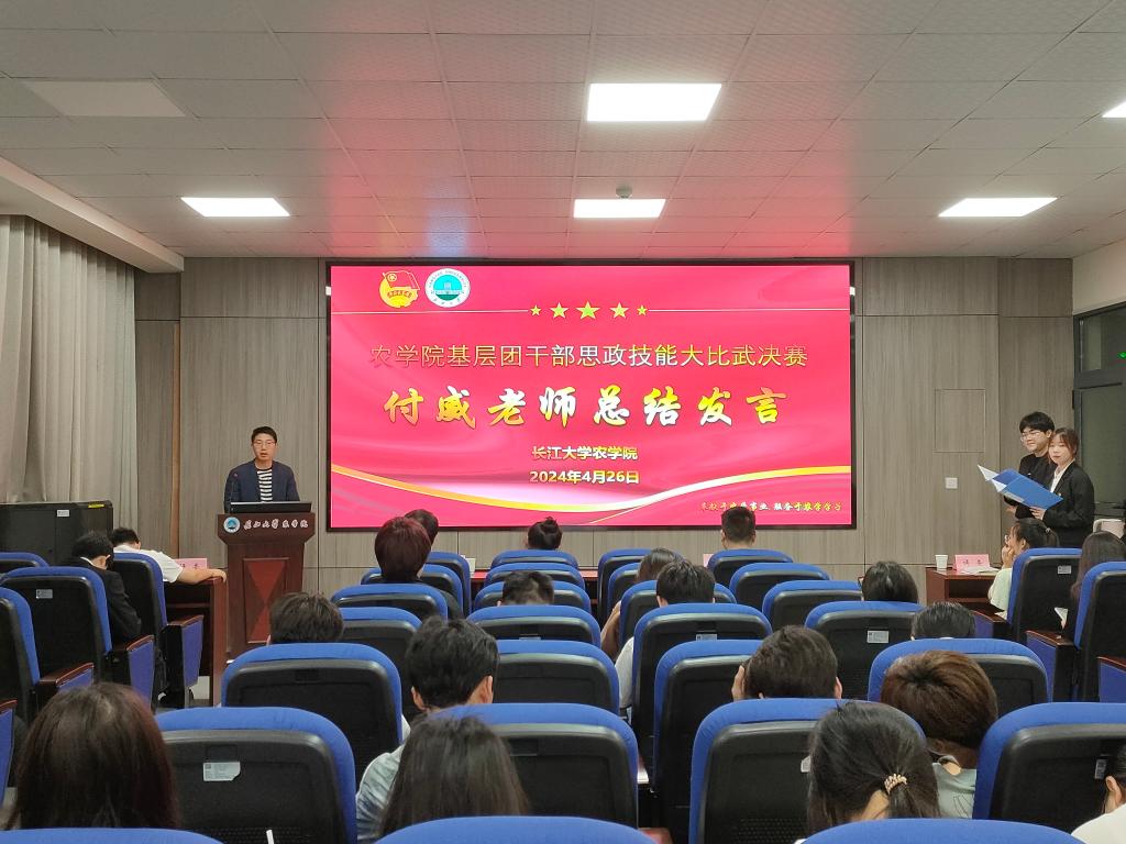 思政技能大比武决赛于4月26日下午6:30在农科大楼3073报告厅举行。参与此次活动的有校团委张鑫老师、农学系覃元老师、农资系付威老师、辅导员唐玉婷老师、兼职辅导员毛国庆、李洪洲和孙振艳以及77779193永利官网学生干部和各班班委。