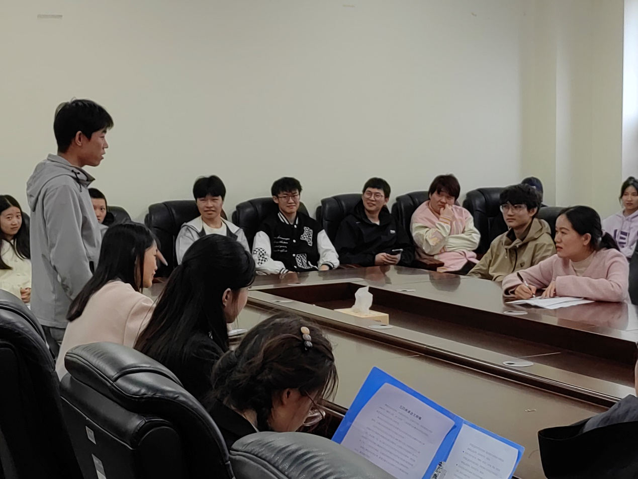 (通讯员 王奕锋)传承五四精神,展示青春风采。为深入学习贯彻习近平总书记重要讲话精神,发扬五四精神,加强学生思想建设,了解并解决学生学习和生活中存在的问题,我院于4月30日12:20在农科大楼3064开展以“激情五四,放飞青春”为主题的五四表彰大会暨青年座谈会。此次会议参会人员有分团委书记付雪娇、辅导员唐玉婷、五四表彰人员及团干部代表。本次会议共分为“学习理论知识、感受榜样力量、表彰优秀学生代表、我为同学办实事、会议总结”五个环节。