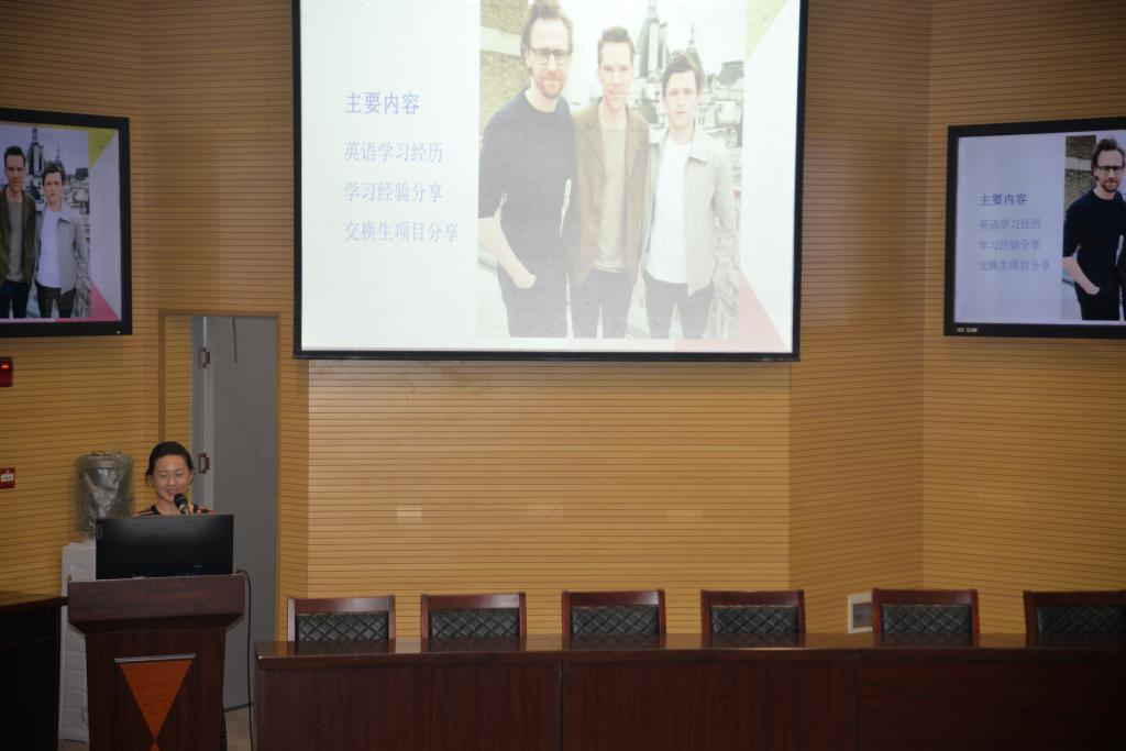 分享会伊始,辅导员唐玉婷首先上台,对贾子萱进行了简要的介绍。辅导员唐玉婷提到,贾子萱不仅学业成绩优异,而且在英语学习方面有着独到的见解和丰富的实践经验。她曾留学韩国,这段经历让她对英语学习有了更为深刻的理解和体会。