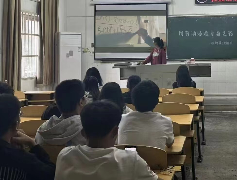 植物类32302班举办了“用劳动浇灌青春之花”主题班会,赵乐妍同学向全班讲解有关劳动教育的相关理论,如劳动教育的目的、劳动的价值观、劳动精神等,强调劳动教育的重要性以及实现劳动教育的路径,提出了大学生应正确认识劳动创造价值、创造财富、创造美好生活的道理,牢固树立劳动最光荣、劳动最崇高、劳动最伟大及劳动最美丽的思想观念。