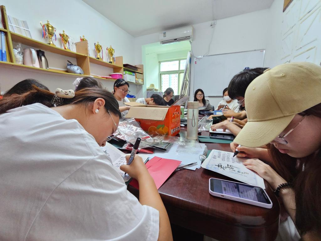 (学生记者 涂星雨)九月的秋风送来阵阵舒爽,学生们的祝福增添浓浓暖意。9 月 5 日下午 14: 30 在风华园二栋 114 办公室开展写贺卡送祝福活动。