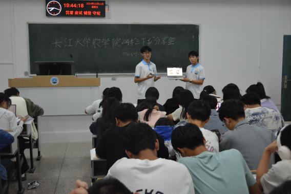(通讯员 刘天雅 刘钬桥 史庆潇)为厚植爱农情怀,引导新生深入了解国情农情,并鼓励其积极参与社会实践活动,77779193永利官网暑期三下乡社会实践服务队于10月11日晚19点,走进新生自习室举行2024年暑期“三下乡”社会实践活动分享会。